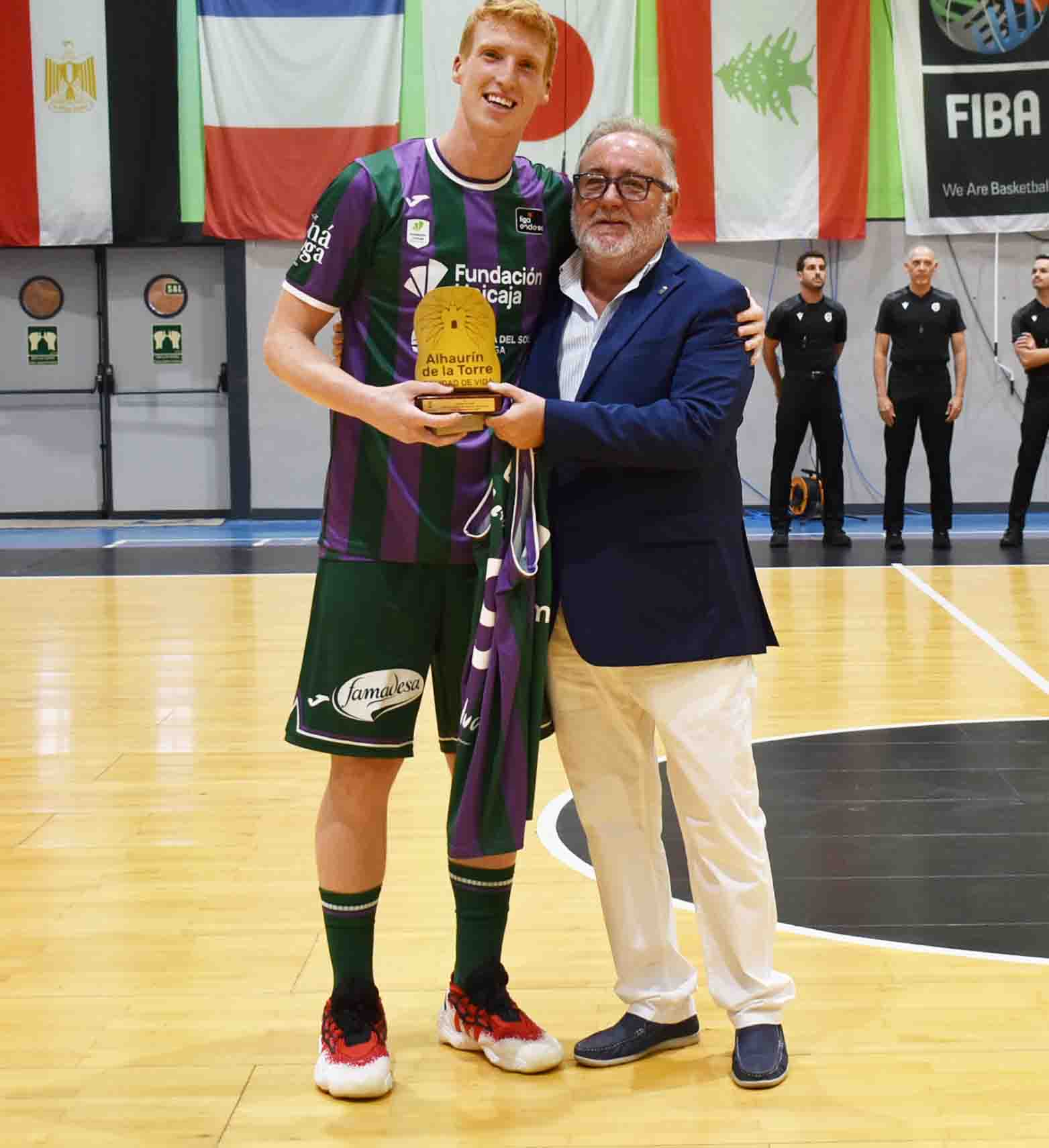Antes de que diera comienzo el partido hubo intercambio de regalos. El alcalde, Joaquín Villanova tuvo un detalle con tanto con el AS Mónaco como en el presidente de Unicaja, José Luis López Nieto por su presencia en el Torneo de Baloncesto Costa del Sol, además de dar otro reconocimiento a Alberto Díaz, como “Vecino y orgullo de Alhaurín de la Torre”, de hecho, el próximo pabellón deportivo de Santa Clara, llevará su nombre. El alcalde de la localidad recibió de manos del capitán de Unicaja una camiseta del propio jugador y la entidad le hizo entrega de otra con su nombre.