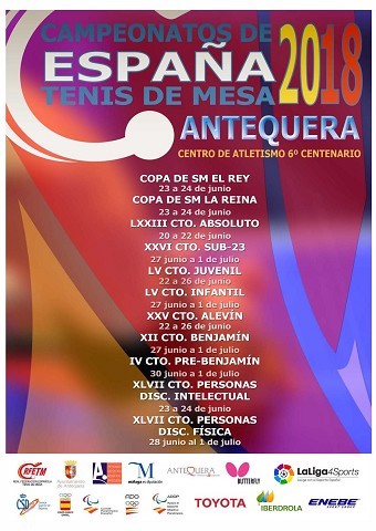 Participarán jugadores de las categorías pre-benjamín (que por primera vez se incluyen en estos campeonatos), benjamín y alevín, infantil, juvenil, sub-23 y absoluta. Habrá pruebas de equipos, individuales y dobles tanto masculinas como femeninas, y también se disputarán pruebas para personas con discapacidad física y con discapacidad intelectual, como viene haciéndose desde la edición de 2010, que también se celebró en Antequera. El tenis de mesa paralímpico está plenamente integrado en la Real Federación Española, según ha explicado su presidente, que ha adelantado que se espera que el número de deportistas discapacitados inscritos sea muy elevado.
