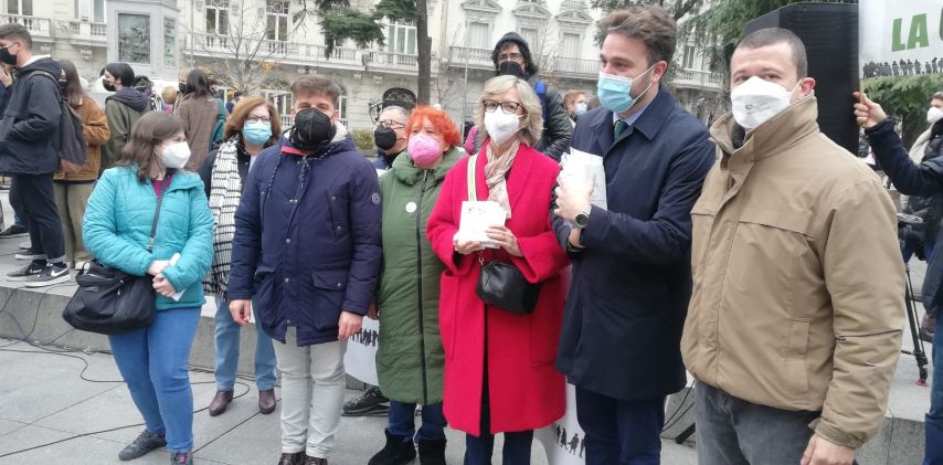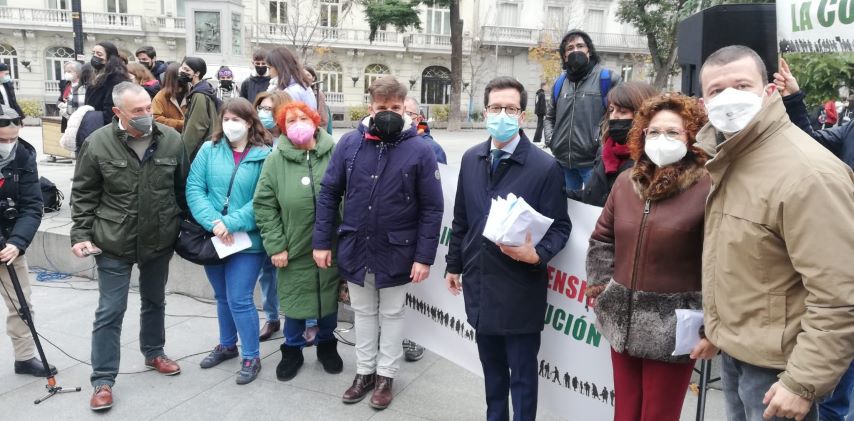 La plataforma ha hecho entrega de las tarjetas en un acto frente al Congreso, acompañados por la coral ‘Voces para la Convivencia’ y el rapero barcelonés Prosik, que han interpretado varios temas, entre ellos una versión de ‘Cantares’ de Serrat que han dedicado a los diputados. El coro pertenece al IES Francisco Umbral de Ciempozuelos, ha conseguido reconocimientos internacionales y nacionales -como el primer puesto en el Certamen Internacional Juvenil de Habaneras de Torrevieja- y está formado por estudiantes de entre 15 y 25 años. Más o menos la edad del rapero de Hospitalet, Prosik, que ha recitado unas frases en referencia a la reivindicación de la MERP.