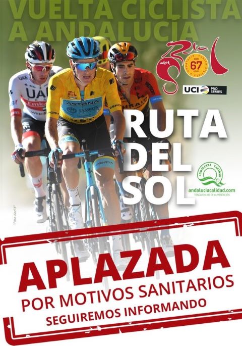 «Desde la organización de la 67ª VUELTA CICLISTA A ANDALUCÍA «RUTA DEL SOL» les comunicamos que ante la actual situación de la pandemia y ante las nuevas medidas sanitarias propuestas para el control de la misma en estas próximas semanas y la proximidad de la Vuelta ciclista a Andalucía hacen que tomemos la decisión preventiva de APLAZAR la carrera en la fecha prevista del 17 al 21 de Febrero.