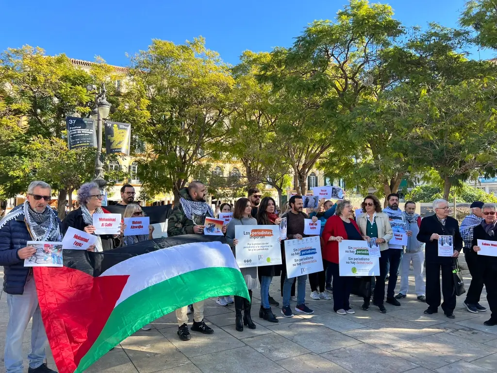 (APM) Periodistas malagueños se manifiestan para denunciar el asesinato de compañeros en Gaza