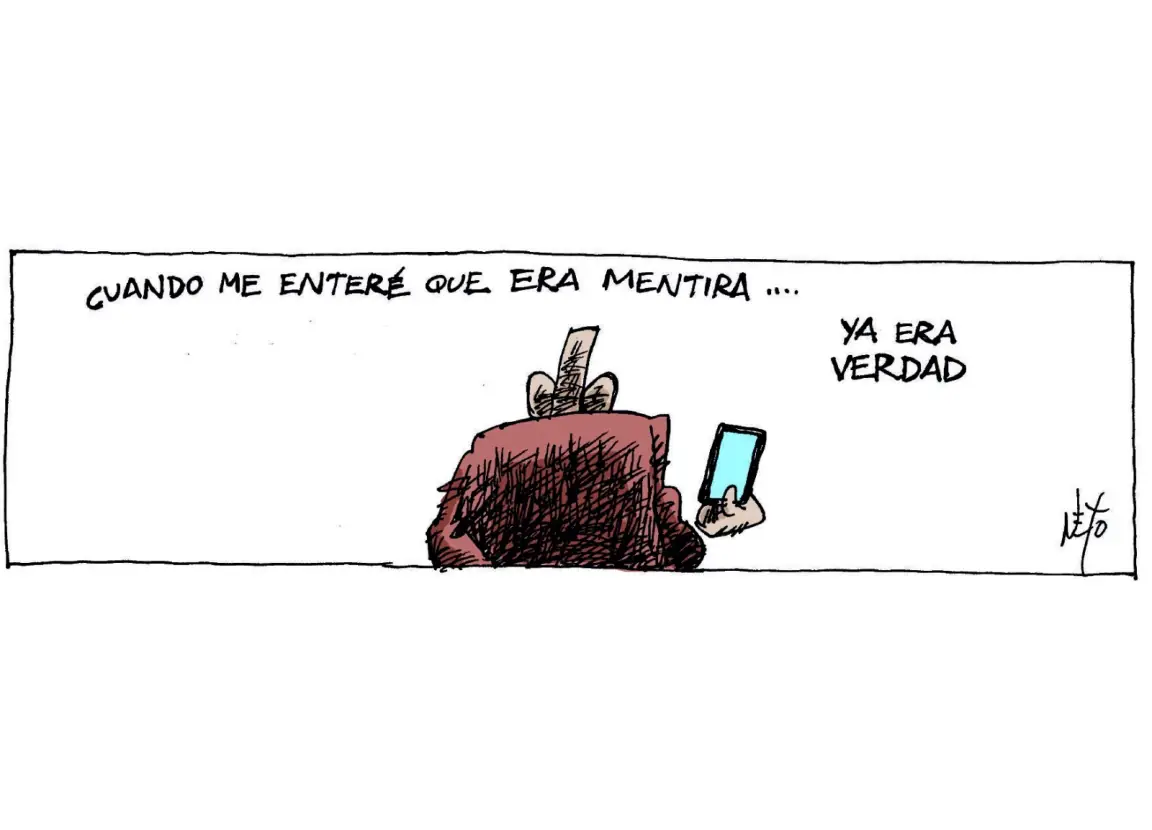El jurado ha elegido la ilustración sobre las fake news del humorista gráfico Neto por su carácter atemporal y la síntesis del dibujo, prescindiendo de elementos que interrumpan un mensaje contundente sobre un tema tan complejo y actual como la desinformación.