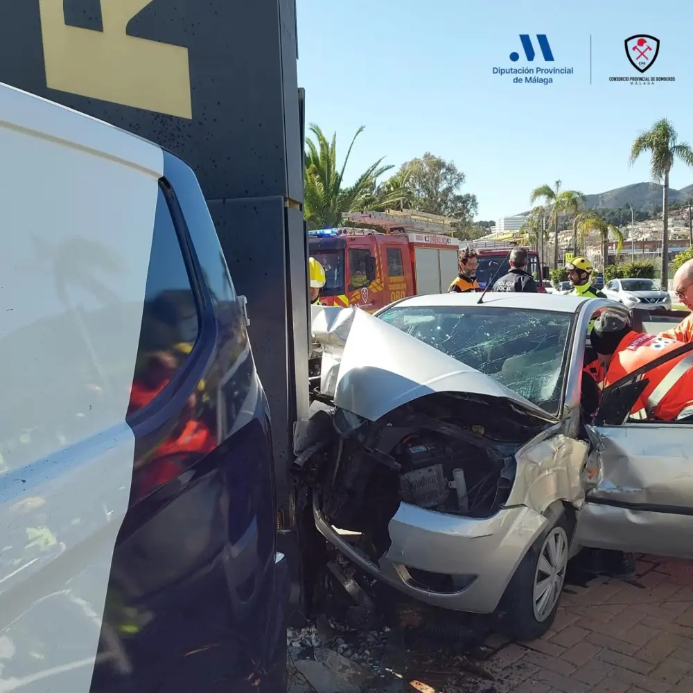 Efectivos del Consorcio Provincial de Bomberos (CPB) de Torremolinos han intervenido en un accidente de tráfico ocurrido en la avenida Manuel Fraga Iribarne, a la altura de la gasolinera situada en la zona de Los Álamos.