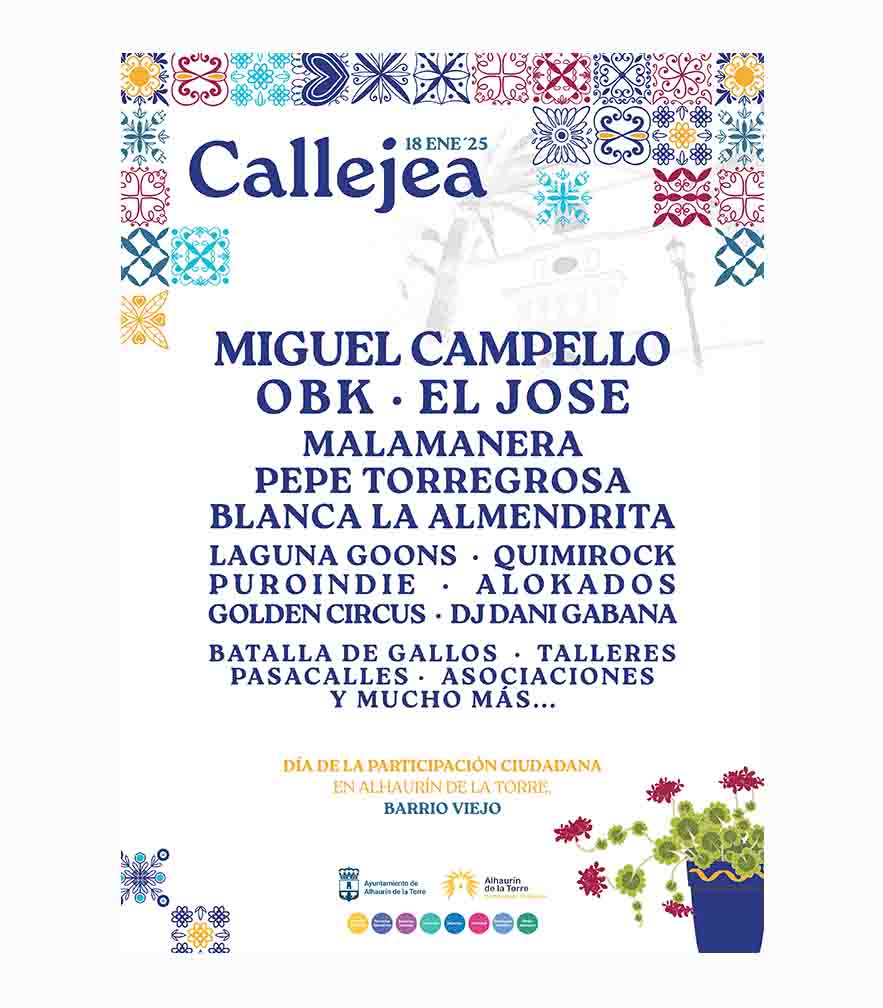 El programa fue presentado en la plaza de la Concepción por el alcalde, Joaquín Villanova, acompañado de representantes municipales y del artista Pepe Torregrosa, quien forma parte del cartel. Este año, Callejea reafirma su compromiso con la visibilidad de los colectivos locales, que podrán instalar sus stands en la calle Málaga y la plaza del Conde. Las asociaciones interesadas pueden inscribirse hasta el 12 de diciembre en el correo: participacionciudadana@alhaurindelatorre.es.