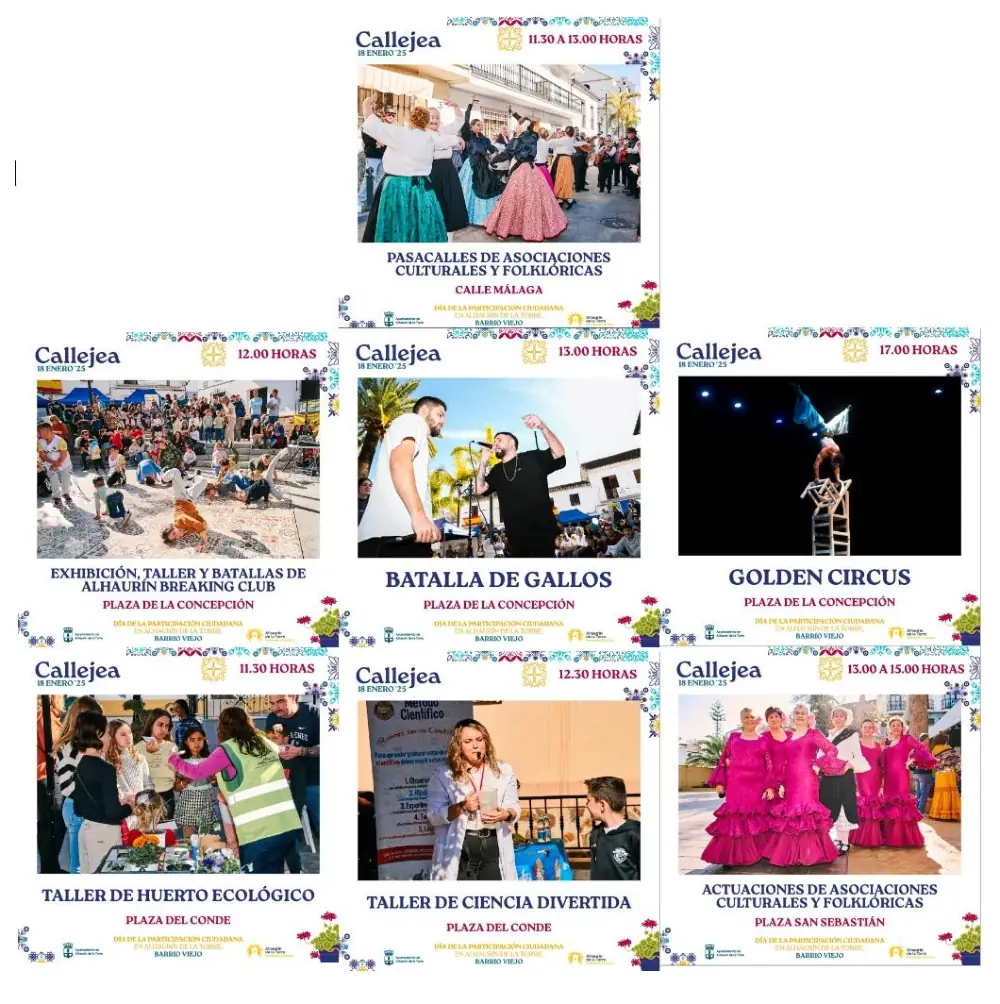 Callejea, el gran evento de la participación ciudadana de Alhaurín de la Torre, regresará este próximo sábado, 18 de enero, a las calles del Barrio Viejo como escenario principal de una fiesta, que ha alcanzado una gran proyección mediática y que cada año va a más en el número de asociaciones participantes y de conciertos y espectáculos para todos los gustos y tramos de edad.