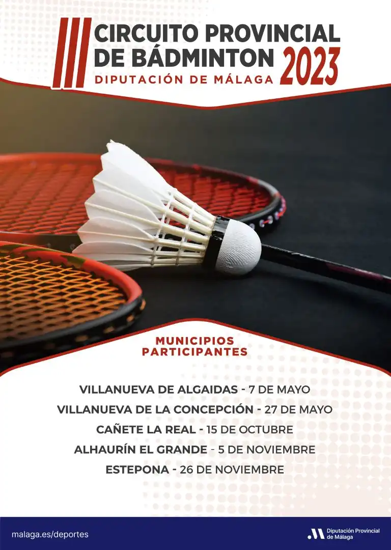 Cerca de 500 deportistas participarán en el III Circuito Provincial de Bádminton, organizado por la Diputación de Málaga y la Federación Andaluza de Bádminton a través de la delegación malagueña, que arrancará el 7 de mayo en Villanueva de Algaidas y continuará en Villanueva de la Concepción, Cañete la Real, Alhaurín el Grande y Estepona.