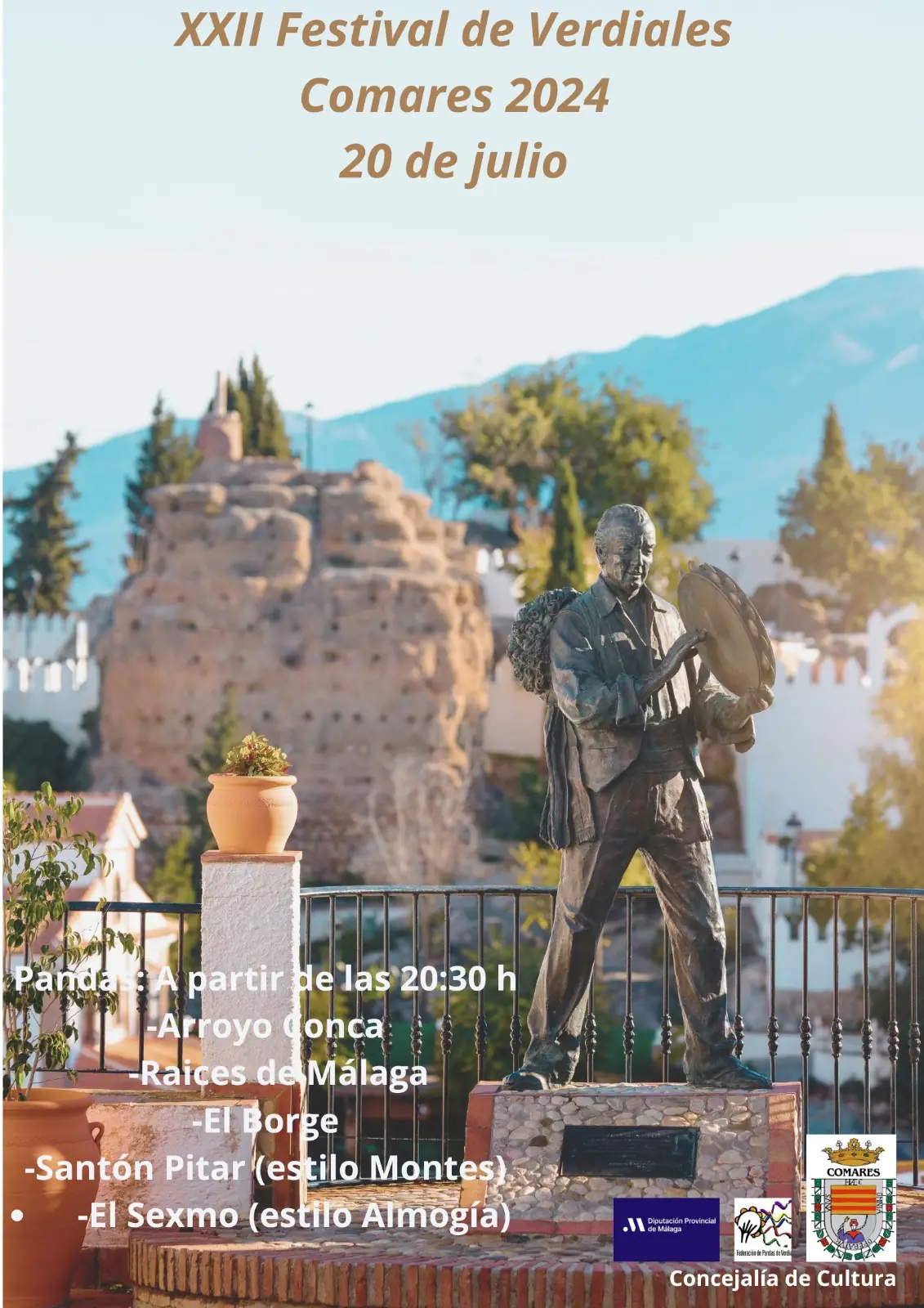Los aficionados a los verdiales tienen una cita ineludible el próximo sábado 20 de julio con la celebración del XXII Festival de Verdiales de Comares desde las 20.30 horas. Las pandas partirán desde la plaza de los Verdiales hasta la plaza Balcón de la Axarquía, y posteriormente recorrerán las distintas calles del municipio.