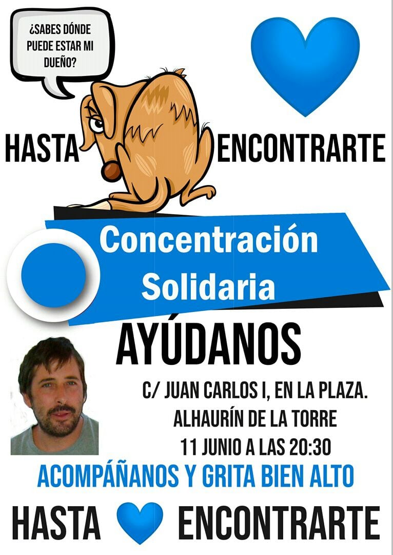 El próximo lunes, 11 de junio, a las ocho y media de la tarde, se ha organizado una concentración solidaria de apoyo a nuestro vecino Antonio Ortega Urbano, en Alhaurín de la Torre, desaparecido desde el 22 de enero en la sierra.