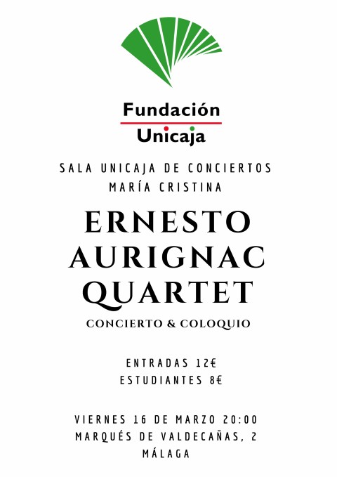 El saxofonista y compositor malagueñeo Ernesto Aurignac ofrecerá un concierto y charlará con el público asistente. Ernesto Aurignac nace en Málaga donde se licencia de saxofón clásico a los 18 años en el Conservatorio Superior de Málaga. A continuación se instala en Barcelona donde estudia jazz, armonía moderna e improvisación de forma autodidacta. Ha actuado a lo largo y ancho de toda la geografía española cosechando siempre éxitos de crítica y público. También ha actuado en New York, Finlandia, Polonia, Ecuador, Francia, Chile, Australia, Rusia, Dinamarca, Alemania, Portugal, Inglaterra, Canadá y México.