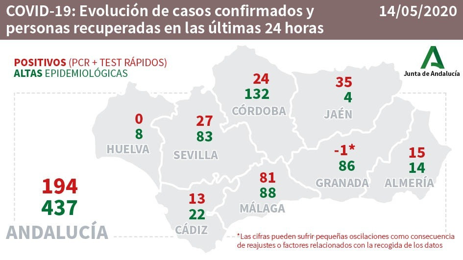 La Consejería Salud y Familias informa que se han confirmado en Andalucía 194 nuevos casos de Coronavirus en las últimas horas. Así, el número total de afectados en Andalucía asciende a 15.823.