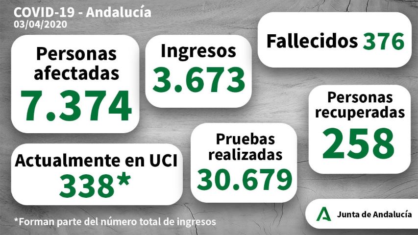 La Consejería Salud y Familias informa que se han confirmado en Andalucía 402 nuevos casos de Coronavirus en las últimas horas. Así, el número total de afectados en Andalucía asciende a 7.374.