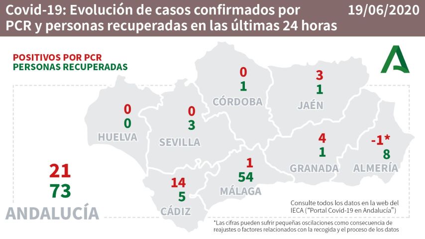 Por provincias: en Almería (4 hospitalizaciones y ninguno en UCI), Cádiz (8 hospitalizaciones de los que 3 en UCI), Córdoba (4 hospitalizaciones de los que 1 en UCI), Granada (9 hospitalizaciones de los que 3 en UCI), Huelva (1 hospitalizaciones de los que 1 en UCI), Jaén (1 hospitalizaciones de los que 1 en UCI), Málaga (9 hospitalizaciones de los que 1 en UCI) y Sevilla (6 hospitalizaciones de los que 1 en UCI).