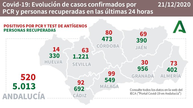 Todos los datos están disponibles en la web del IECA en el siguiente enlace (no se actualiza ni sábados ni domingos): http://www.juntadeandalucia.es/institutodeestadisticaycartografia/salud/COVID19.html