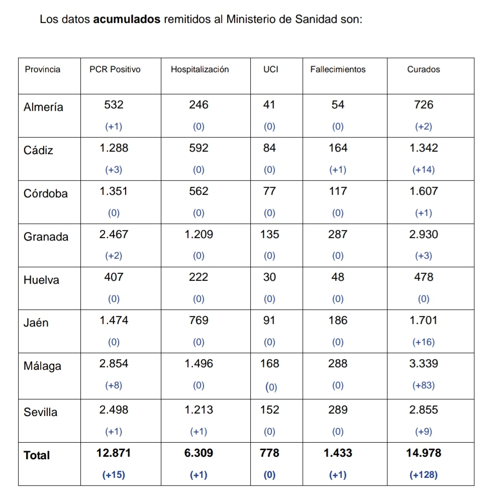 Datos Covid19 en Andalucía 18 de junio