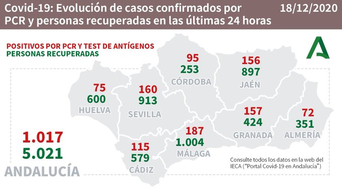 Evolución de los casos confirmados de #COVIDー19 y personas recuperadas en las últimas 24 horas en #Andalucía. Se incluyen los positivos por PCR y test de antígenos.