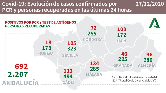Todos los datos están disponibles en la web del IECA en el siguiente enlace (no se actualiza ni sábados ni domingos): http://www.juntadeandalucia.es/institutodeestadisticaycartografia/salud/COVID19. html