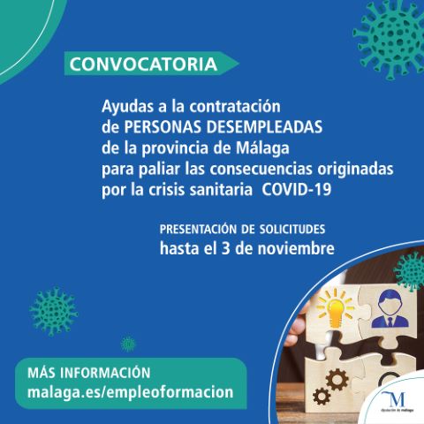 Por el contrario, del segundo gran bloque de ayudas que se conceden desde la Delegación de Empleo y Formación, dotado con 1.800.000 euros, y destinado a paliar el desempleo, aún están disponibles 1.752.000 euros al haberse recibido, hasta la fecha, sólo seis solicitudes. Estas ayudas de apoyo a la contratación están destinadas a recuperar el empleo de aquellas personas que se hayan visto inmersas en un ERE y/o que hayan perdido su trabajo antes del 30 de marzo, así como a los desempleados que sigan dados de alta en el Servicio Andaluz de Empleo a fecha de la presentación de la solicitud de ayuda.