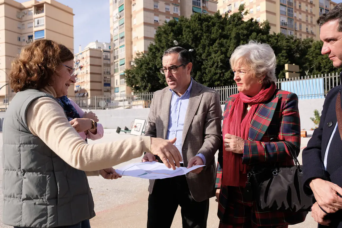 El delegado territorial de Desarrollo Educativo y Formación Profesional y de Universidad, Investigación e Innovación, Miguel Briones, ha visitado hoy junto a la presidenta de la Junta de Distrito nº 6 Cruz de Humilladero, Teresa Porras; la jefa del Servicio de Planificación, Eva Sánchez, y el gerente provincial de la Agencia Pública Andaluza de Educación (APAE), José Labrador, la actuación que la Consejería se encuentra desarrollando en el CEIP Camino de San Rafael, destinadas a restaurar las pistas deportivas del centro.