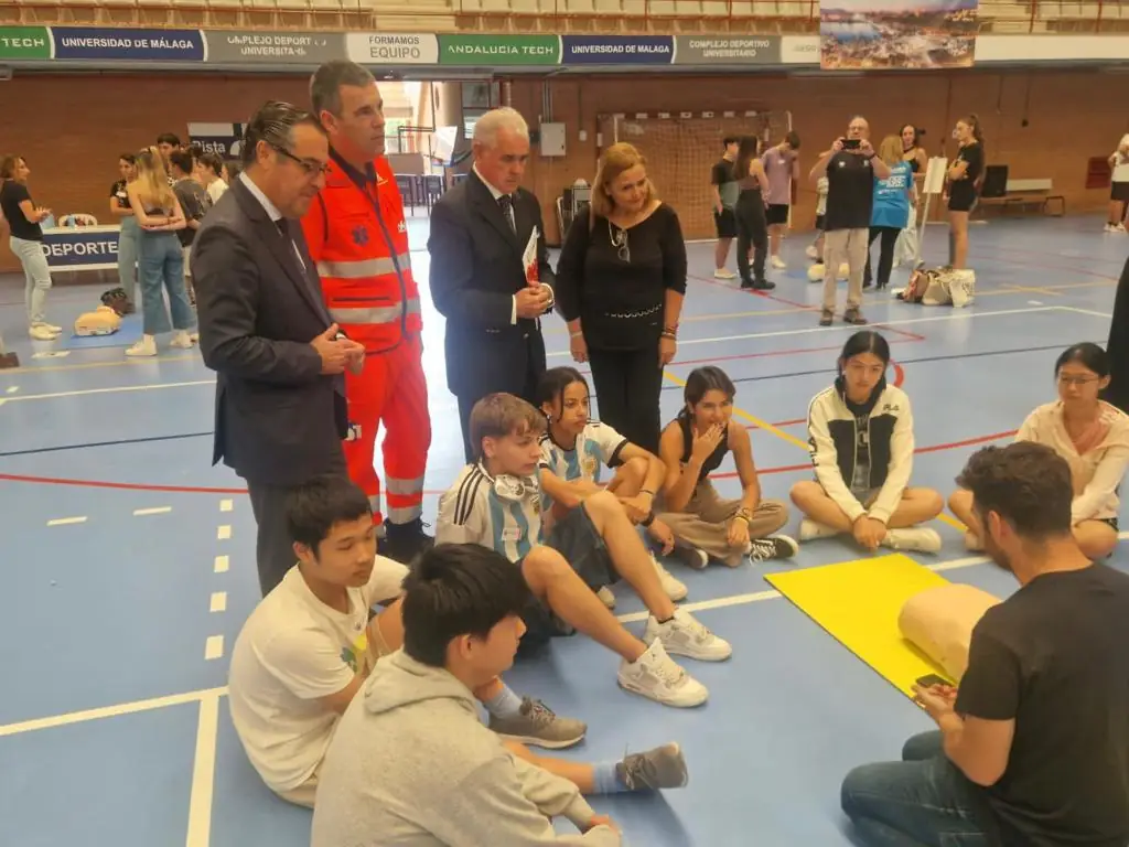 Esta iniciativa ha contado en Málaga con la presencia del delegado de Desarrollo Educativo y Formación Profesional y de Universidad, Investigación e Innovación, Miguel Briones. Las jornadas han tenido lugar en el Complejo Deportivo Universitario del Campus de Teatinos de la Universidad de Málaga, donde se han llevado a cabo el entrenamiento de 1.200 jóvenes procedentes de centros de educación secundaria obligatoria, que a lo largo de la mañana y en grupos reducidos se han entrenado en estas técnicas durante una hora cada uno. “Esta cita anual, celebrada con motivo del Día Europeo ante la Parada Cardíaca, ha permitido formar a 11.185 malagueños desde 2013”, ha destacado Briones.