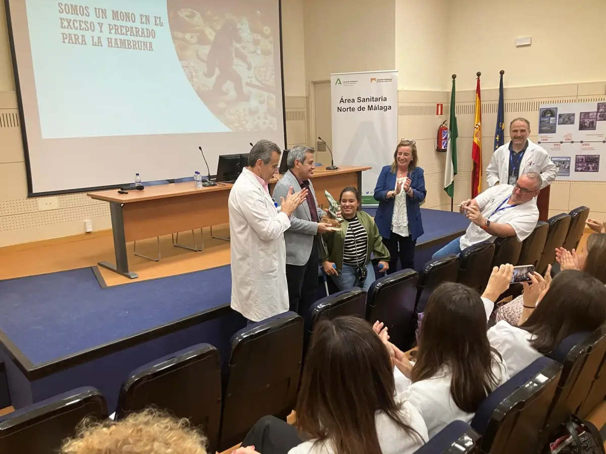 Al final del acto, Belén Jiménez ha agradecido al Dr. Tinahones su presencia y la Concejal de Accesibilidad, Educación y Salud del Ayuntamiento de Antequera, Sara Ríos le ha hecho entrega, de una escultura en bronce que vincula la ciudad de Antequera con la labor asistencial y los cuidados prestados por los profesionales sanitarios.