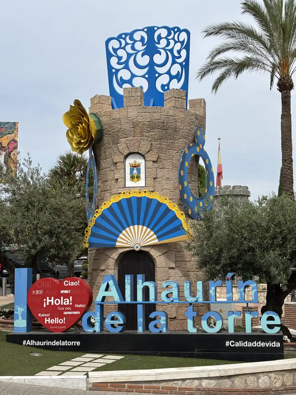 Un año más la emblemática torre de Alhaurín luce motivos de fiesta como una peineta y pendientes, al igual que lo hará la chorisia de la Avenida de Cristóbal Colón.