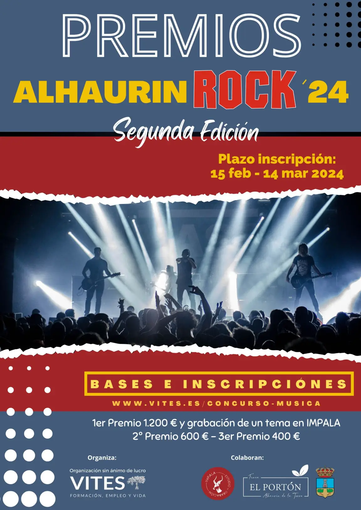 El Ayuntamiento de Alhaurín de la Torre y la asociación Vites lanzan la segunda edición del concurso Alhaurín RockEl certamen se ha presentado en El Portón y este año la principal novedad es que las tres bandas finalistas actuarán en el concierto de 8 junio en el Parque Municipal junto con el grupo Malavé. El plazo de inscripciones ya está abierto y el ganador recibirá 1.200 euros