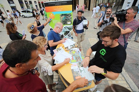 Hoy martes se ha instalado en la céntrica calle Larios una réplica a tamaño real de las pasarelas del sendero y se ha desarrollado una campaña de información y recogida de adhesiones
