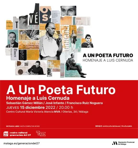 Con este motivo se celebra el encuentro ‘A un poeta futuro’, en el que Sebastián Gámez Millán, doctor en filosofía y escritor, trazará una breve semblanza de la trayectoria vital y creadora de Cernuda y analizará e interpretará varios poemas acompañado por los reconocidos poetas y miembros de la Real Academia de Bellas Artes de San Telmo José Infante y Francisco Ruíz Noguera, que recitarán y comentarán sus poemas preferidos del autor más peculiar del grupo poético del 27.