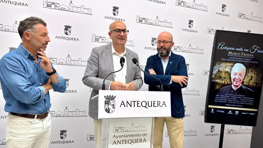El 29 de agosto, ‘Antequera canta con Frisina’ ofrecerá un encuentro coral que hablará de la propia historia de Antequera, con piezas de Monseñor Marco Frisina, pero vinculada a la historia de la propia ciudad, con el nombre de las iglesias de la ciudad y con la presencia de tantas comunidades religiosas a lo largo de su historia. Al encuentro acudirán coros de toda la comunidad autónoma. De provincias como Huelva, Jaén, Cádiz y Málaga, convirtiendo a Antequera en el epicentro de la música sacra a nivel nacional.