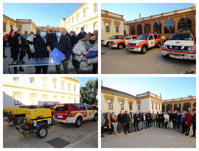 El Consorcio Provincial de Bomberos de Málaga (CPB) ha cedido a 11 municipios de la provincia vehículos todoterreno para llevar a cabo actuaciones de emergencia en lugares estratégicos y en municipios con dotación de Protección Civil. En unos casos, disponen de remolque de agua, y en otros con equipos para colaborar en la extinción de incendios, que incluye manguera, depósito de agua y generador, entre otros elementos.