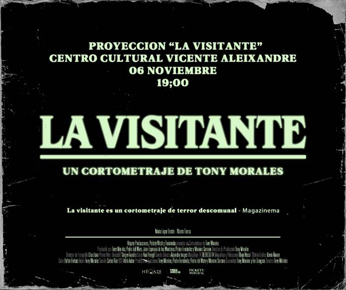 ‘La visitante’ es el título del último cortometraje realizado por el director, guionista y productor malagueño Tony Morales. Mañana, 6 de noviembre, a las siete de la tarde se proyecta en el Centro Cultural ‘Vicente Aleixandre’, en una cita que forma parte de la programación de este mes del Área de Cultura que dirige Manuel López.