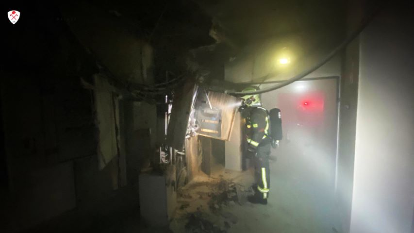 Se ha localizado el foco en la planta de servicios, dentro del cuarto del grupo electrógeno (planta -1), por lo que se ha procedido a realizar las labores de extinción y posterior ventilación.