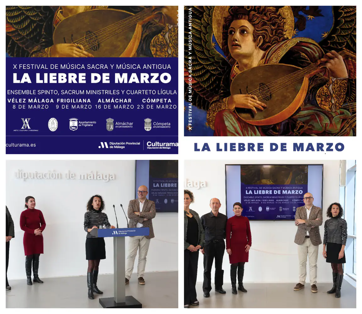El festival ‘La Liebre de Marzo’ de la Diputación de Málaga cumple diez años llevando la música sacra y la música antigua a los municipios de la Axarquía. Su décima edición se celebrará los días 8, 9, 16 y 23 de marzo con las agrupaciones musicales Cuarteto Lígula, Sacrum Ministriles y Ensemble Spinto.