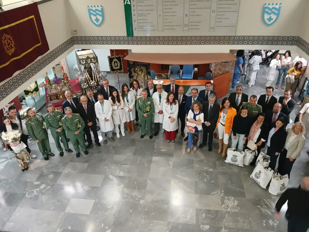 Miembros del equipo directivo del Hospital Regional Universitario de Málaga, encabezados por su director gerente, José Antonio Ortega, junto con el delegado de Salud y Consumo, Carlos Bautista, y varios profesionales del servicio de pediatría, han recibido esta mañana al Hermano Mayor de la Congregación de Mena, Antonio de la Morera. También han estado presentes el general de la Legión Española, Excelentísimo Señor José Agustín Carreras Postigo, y el presidente del Equipo Muñoz Castellano, Íñigo Susaeta.