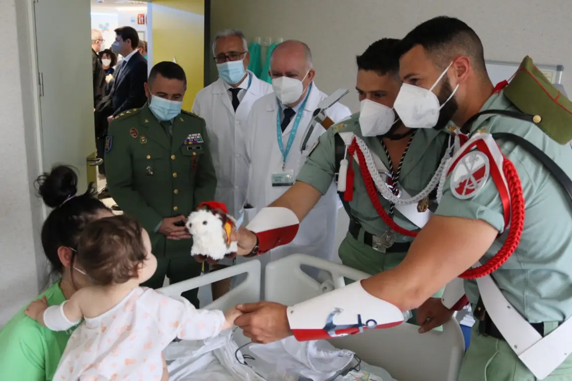 La Brigada Rey Alfonso XIII ha realizado un recorrido por el hospital de día pediátrico, la planta de oncología infantil, y diálisis, y han terminado su visita en la ludoteca donde les esperaban muchos pequeños, algunos familiares y profesionales que no han querido perder la oportunidad de compartir un momento distendido con los visitantes.