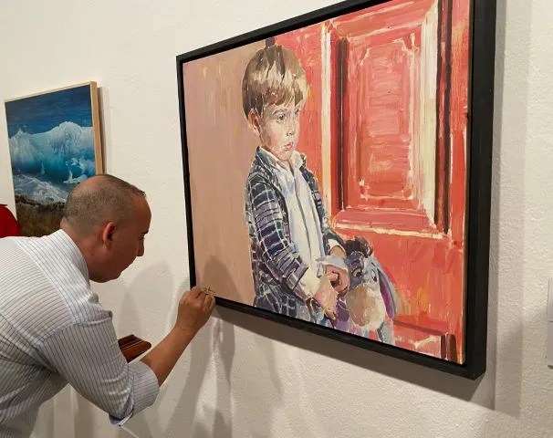 Tras el fallo del jurado, el artista ganador, Alejandro Galán, ha firmado su obra, que quedará en poder de la Diputación para formar parte de su colección institucional de arte.