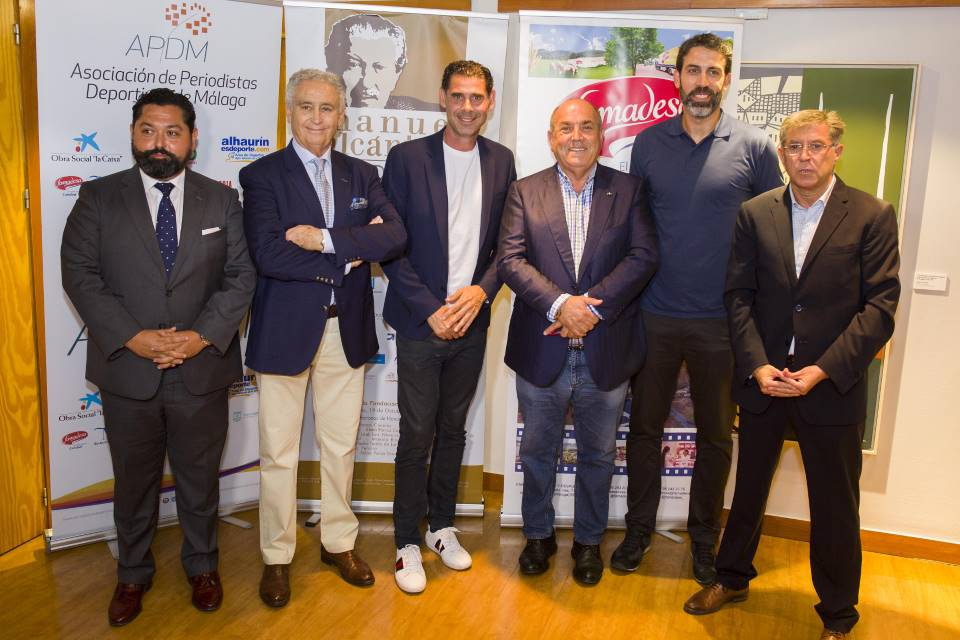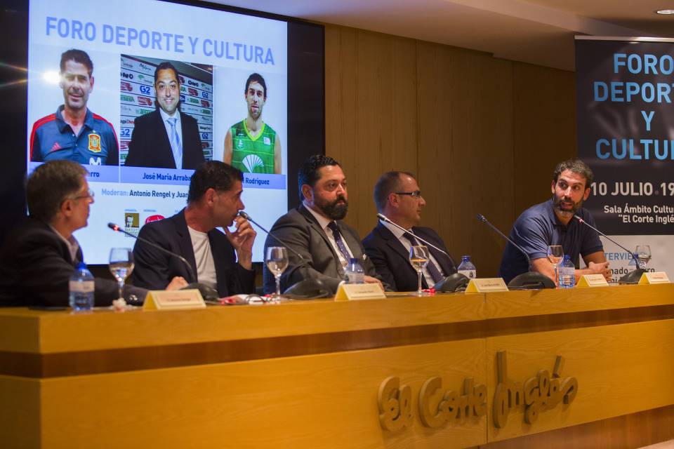 Los deportistas malagueños Fernando Hierro y Berni Rodríguez, y el secretario general de Deportes de la Junta de Andalucía, José María Arrabal, han participado este miércoles en el foro ‘Deporte y Cultura, organizado por la Fundación Manuel Alcántara junto a FAMADESA y la Asociación de Periodistas Deportivos de Málaga (APDM). La jornada, celebrada en la Sala Ámbito Cultural de El Corte Inglés, ha sido dirigida por el director del Diario Marca, Juan Ignacio Gallardo, y el presidente de la APDM, Antonio Rengel.