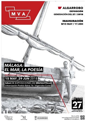 La poesía de la Generación del 27 llega al municipio de Algarrobo de la mano de la Delegación de Cultura de la Diputación y de la exposición ‘Málaga: el Mar, la Poesía, un sugestivo acercamiento al mundo poético de la Edad de Plata de las letras españolas que podrá visitarse a partir de mañana, martes 15 de mayo, y hasta el próximo 29 de junio, en la sala de exposiciones de Mezquitillas (Urbanización Pueblo Bahía 76, Algarrobo Costa), en horario de 11.00 a 14.00 y de 17.30 a 20.30 de martes a domingo.