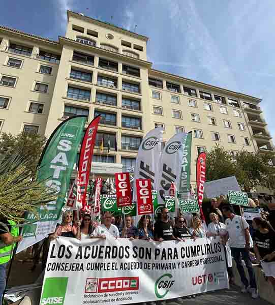 Los sindicatos SATSE, CSIF, CCOO y UGT han cifrado en un 75% el seguimiento global de la huelga convocada este miércoles, 26 de junio, en todos los centros del Sistema Sanitario Público Andaluz entre las 08.00 y las 11.00 horas. Las cuatro organizaciones sindicales, que representan a ocho de cada diez profesionales de la sanidad pública andaluza, han calificado como “éxito rotundo” la jornada de paros, convocados en demanda del cumplimiento de los acuerdos de Atención Primaria y carrera profesional, la consolidación y aumento de las plantillas y la actualización de la Bolsa de Empleo Temporal del SAS sin notas de corte.