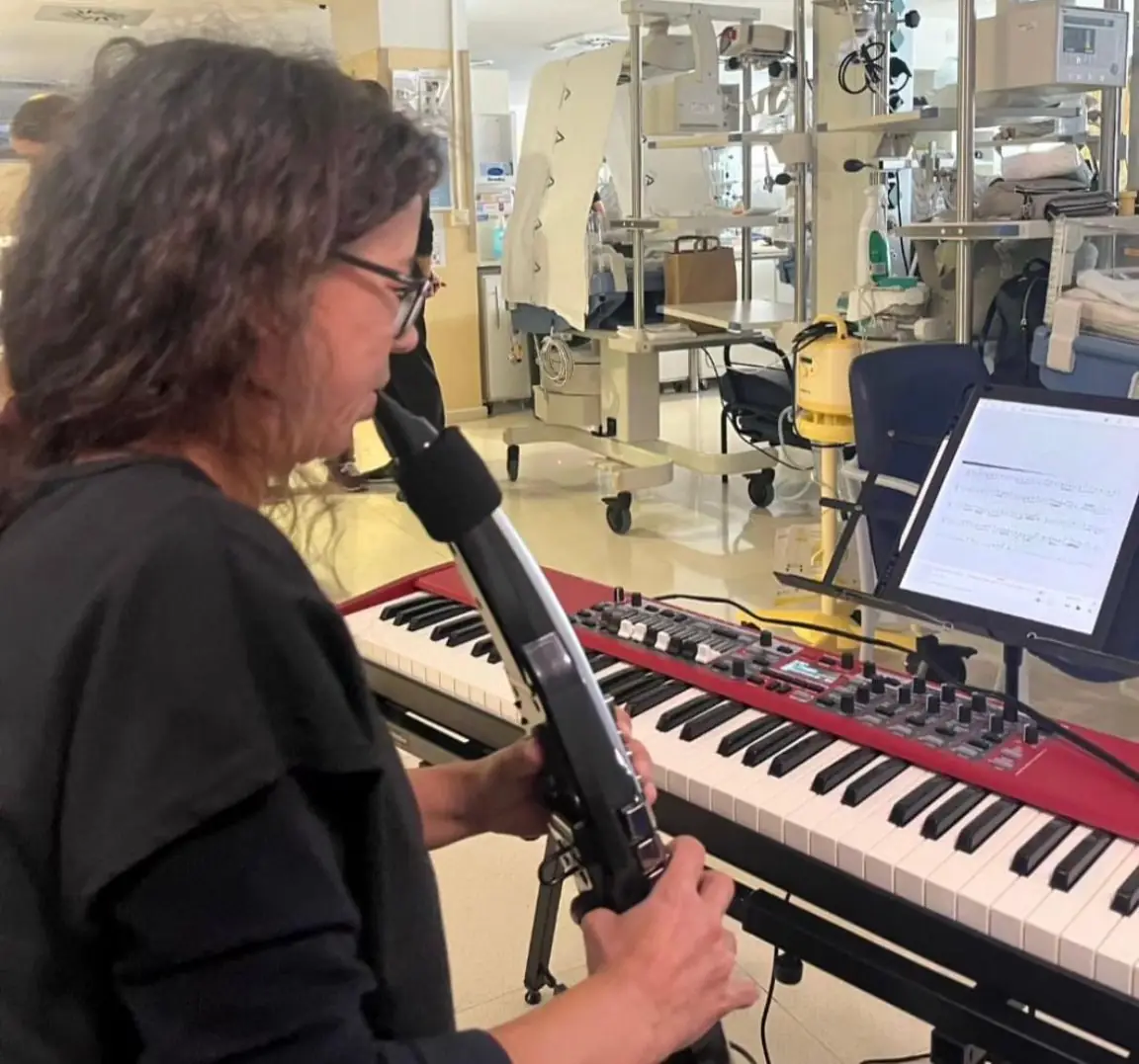 El servicio de Neonatología del Hospital Materno Infantil de Málaga celebra el día de la madre con una sesión del proyecto “Sueños con notas musicales”, una actividad de carácter mensual que consiste en llevar música en directo durante una hora, adaptada al espacio y a las familias que se encuentran en él.