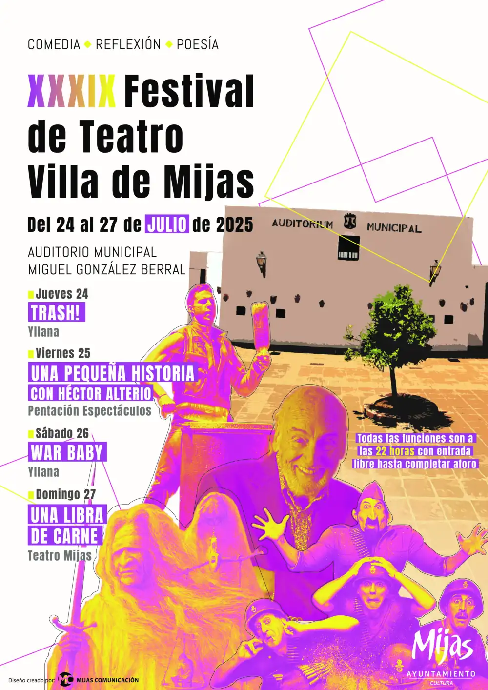 El municipio de Mijas se prepara para celebrar una nueva edición de su emblemático Festival de Teatro Villa de Mijas, que este año alcanza su trigésimo novena edición. La cita tendrá lugar del 24 al 27 de julio en el Auditorio Municipal Miguel González Berral de Mijas Pueblo, con funciones gratuitas a partir de las 22:00 horas y acceso libre hasta completar aforo.