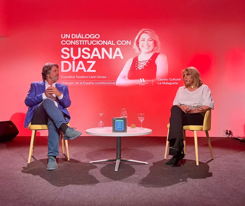El presidente de la Diputación de Málaga, Francisco Salado, ha asistido al encuentro con la expresidenta de la Junta de Andalucía y senadora socialista Susana Díaz con motivo del ciclo de conferencias ‘Diálogos de la España constitucional’ del centro cultural La Malagueta a cargo del periodista Teodoro León Gross.