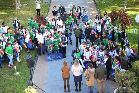 Con motivo de El Día de Andalucía, que se celebra el próximo 28 de febrero, una centena de alumnos del CEIP Enrique Ramos Ramos de Mezquitilla (Algarrobo) y del CEIP Lope de Vega de Coín, han participado hoy en la Diputación de Málaga en la celebración de esta festividad en las instalaciones de La Térmica.