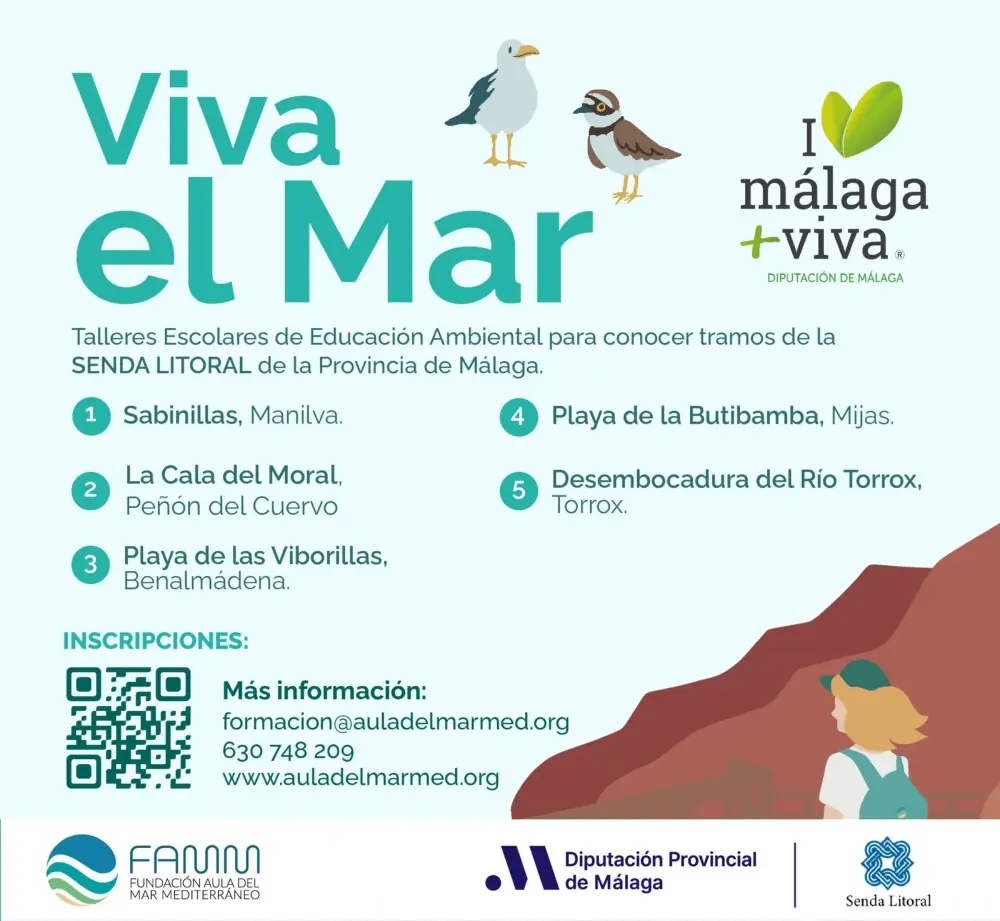 La Diputación de Málaga organiza, junto a la Fundación Aula del Mar Mediterráneo, una nueva edición del programa ‘Viva el Mar’, que contempla que escolares de municipios menores de 20.000 habitantes visiten diversos tramos de la Senda Litoral con la realización de dinámicas de participación y formación medioambiental.