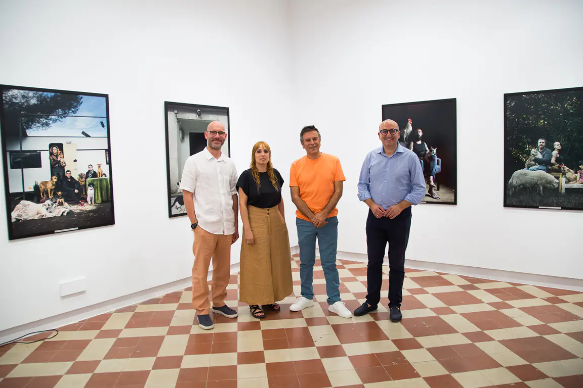 «La artista imagina y fotografía hogares inclusivos en los que caben todos», ha explicado Mestanza. «Para ella, los miembros de una familia no los determina la especie o el registro civil, sino el amor. Por eso, los animales pueden ser integrantes de pleno derecho de estos grupos heterogéneos que no entienden de barreras, sino solo de cuidados y de afecto».