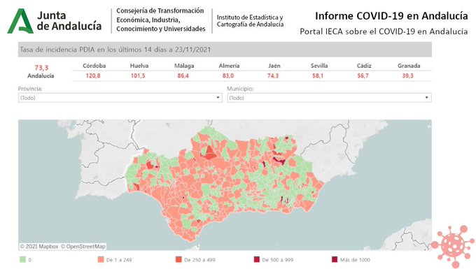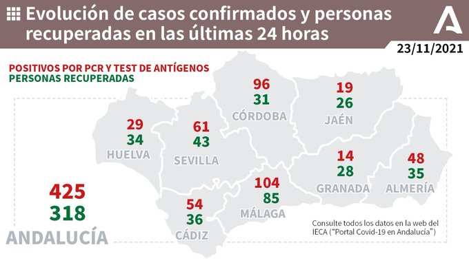 Actualización de datos Covid–19 Vacunas administradas en Andalucía a 22 de noviembre: