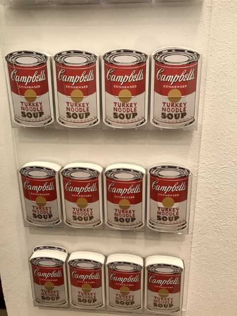 Están representadas todas las etapas del artista, desde sus primeros dibujos en la década de los cincuenta, pasando por pinturas originales de muchas de sus creaciones más icónicas —Before and After (1961), Three Coke Bottles (1962), Brillo Soap Pads Box (1964-1968), Gold Marilyn (1962), Liz (1963), Mao (1973), Cow Wallpaper (1966) y un largo etcétera—, hasta el autorretrato de gran formato de 1986, que da la bienvenida a los visitantes en la entrada a la exposición. Además, tras su paso por CaixaForum Barcelona y Madrid, la exposición incorpora en el Museo Picasso Málaga las pinturas Campbell Soup (1962), Triple Rauschenberg (1962), Nine Jackies (1964) y doce lienzos de Mao (1973), así como los largometrajes Blow Job (1964), Eat (1964) y Sunset (1967) y también obra gráfica y material documental adicional.