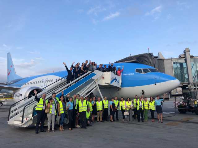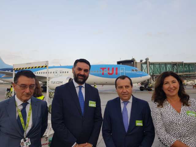 El consejero de Turismo y Deporte, Francisco Javier Fernández, asistió hoy en el aeropuerto de Málaga al bautizo de un avión de la aerolínea TUI, previo a su salida hacia la ciudad belga de Ostende, y valoró la “apuesta” y el “compromiso” de la compañía con la Costa del Sol para llevar su imagen por rutas de todo el mundo, al tiempo que abogó por este tipo de alianzas con los touroperadores para seguir atrayendo viajeros al destino.