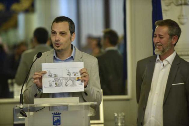 Los humoristas gráficos José María Gallego y Julio Rey, conocidos profesionalmente desde hace 36 años como ‘Gallego y Rey’, han recibido hoy de manos del alcalde de Málaga, Francisco de la Torre, el premio del I Certamen Nacional ‘Elgar’ de Viñetas Periodísticas por su trayectoria profesional. En la categoría Mejor Viñeta Periodística de 2017, los galardonados han sido los malagueños Manuel Luis Gallardo y José Francisco Duarte, ‘Miki y Duarte’, por su viñeta sobre el conflicto catalán publicada el pasado 8 de octubre en los periódicos del Grupo Joly, entre ellos el diario Málaga Hoy.