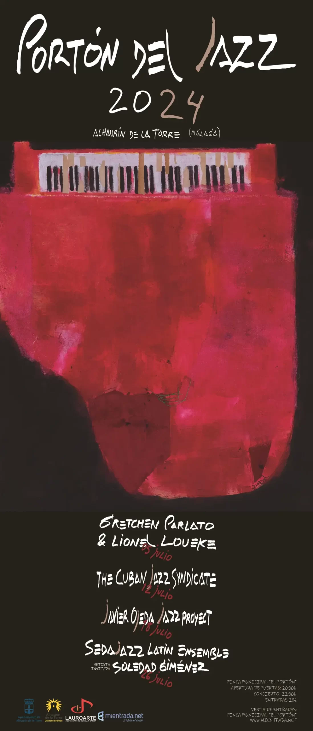 Allí se ha procedido a descubrir el cartel, una obra que como viene siendo tradicional está realizada por el pintor alhaurino José Antonio Diazdel, fiel a su estilo, en la que se puede ver el teclado de un piano sobre un fondo rojo y negro.